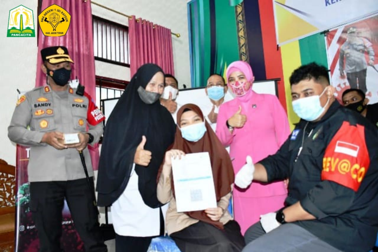 | Foto bersama salah satu Siswi SMAN 1 Idi yang di vaksin |